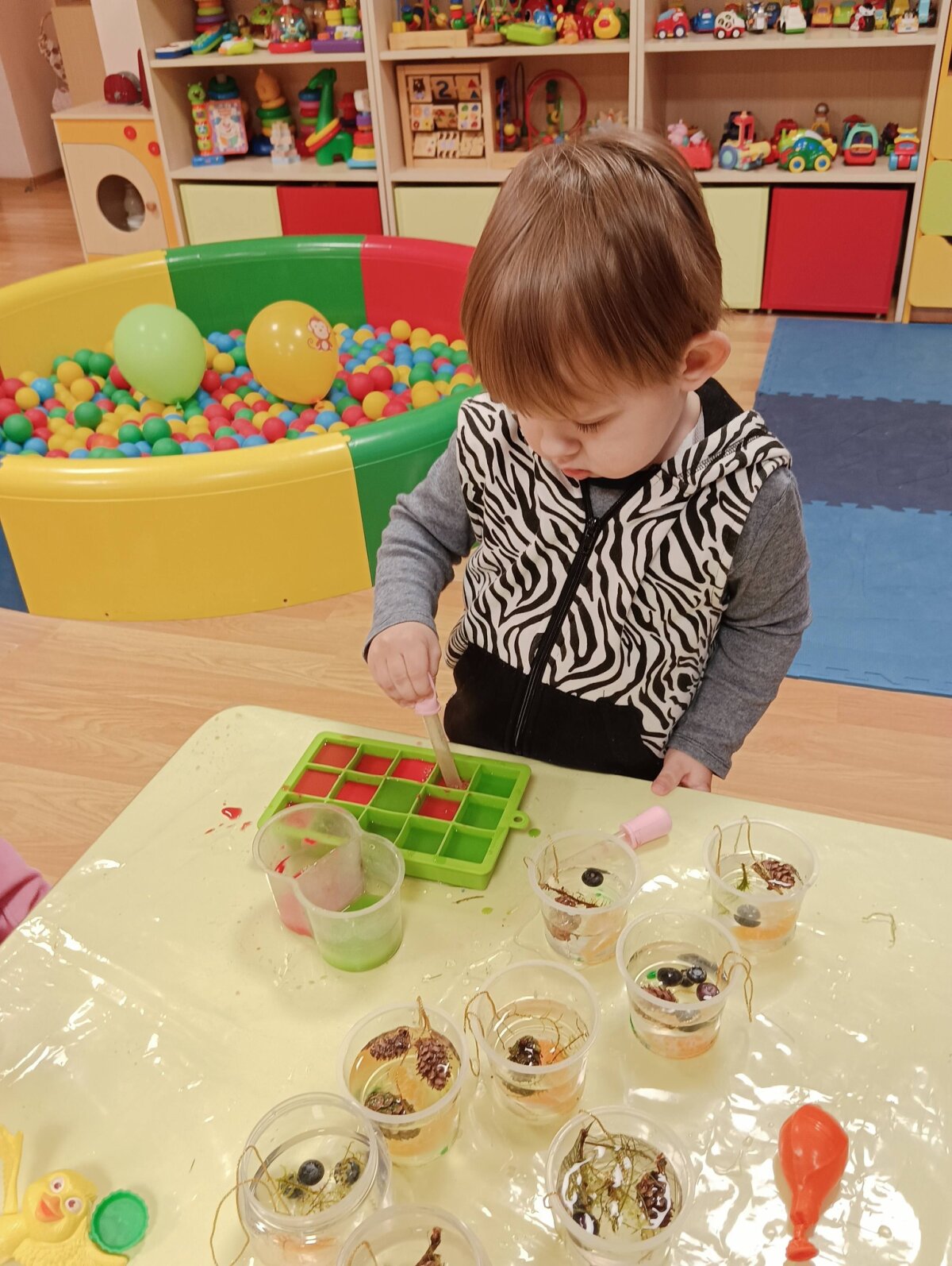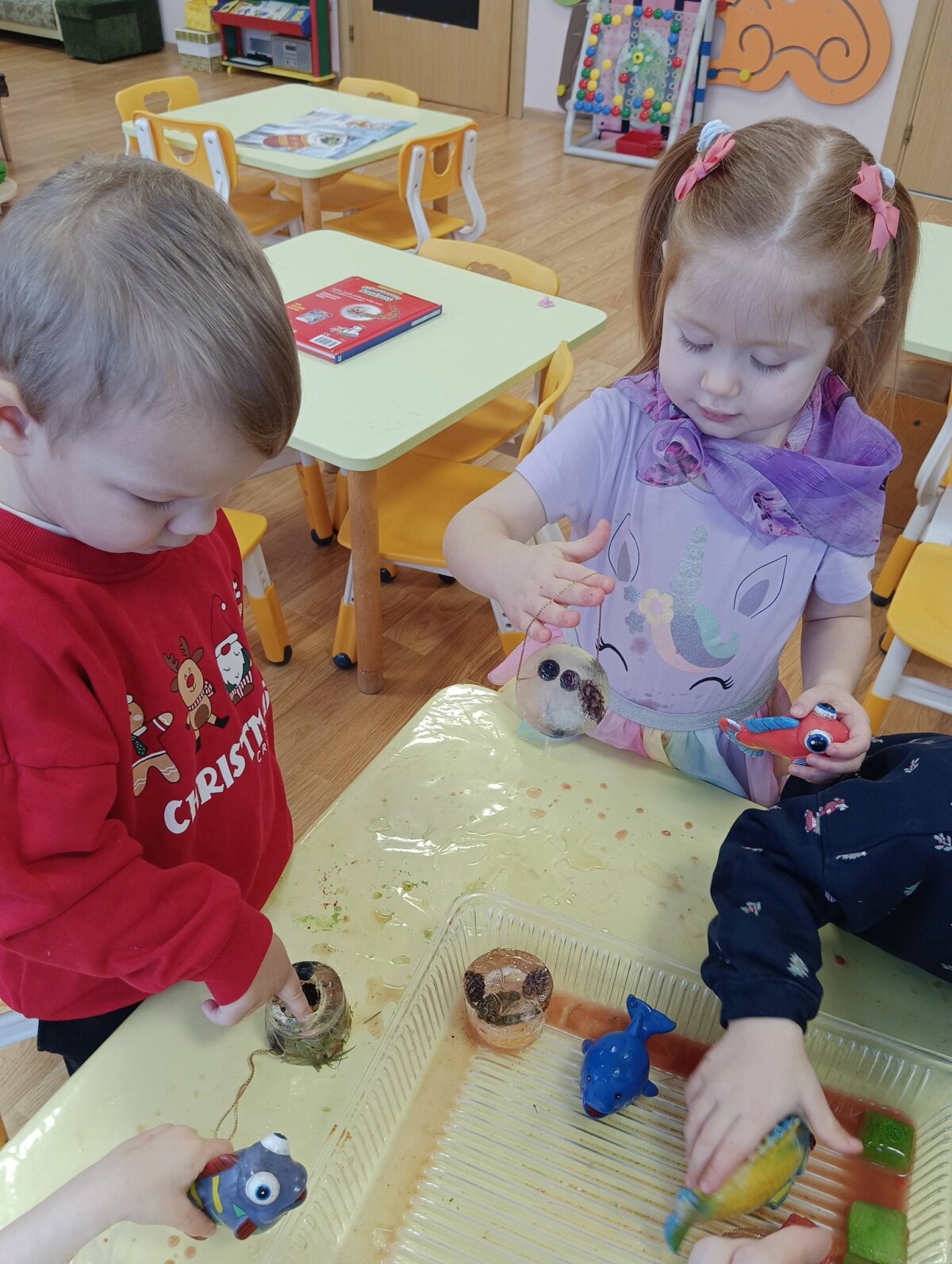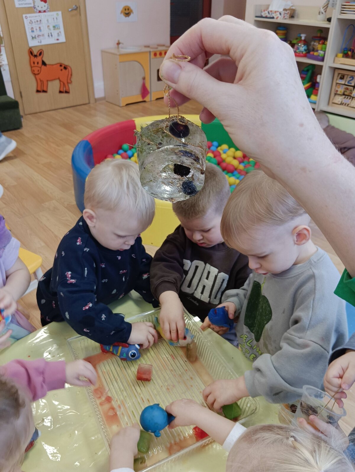 Ryte stebėjome kokiais vaikų ir šalčio sukurtais ledo ,,žaisliukais" virto sušalęs vanduo , tyrinėjome, lietėme,eksperimentavome.