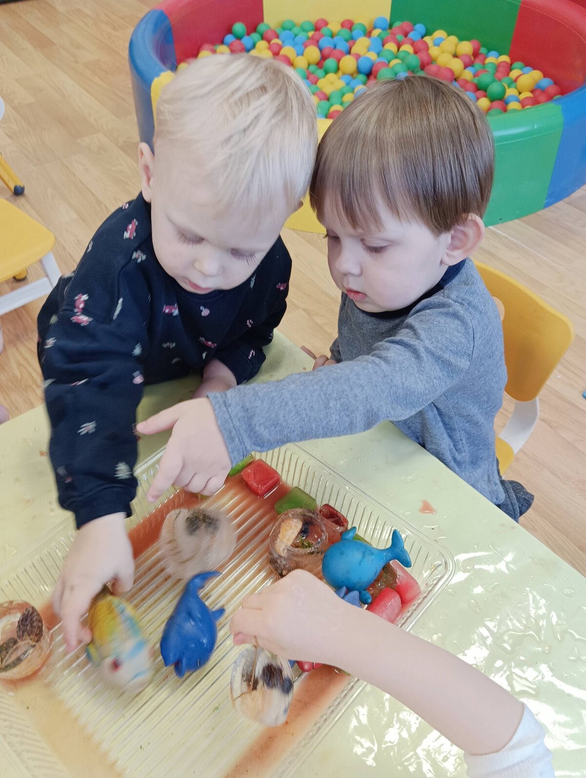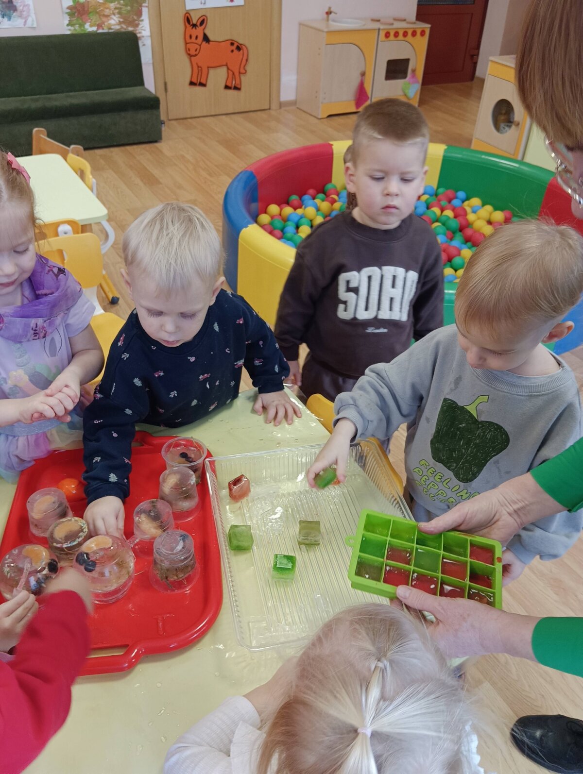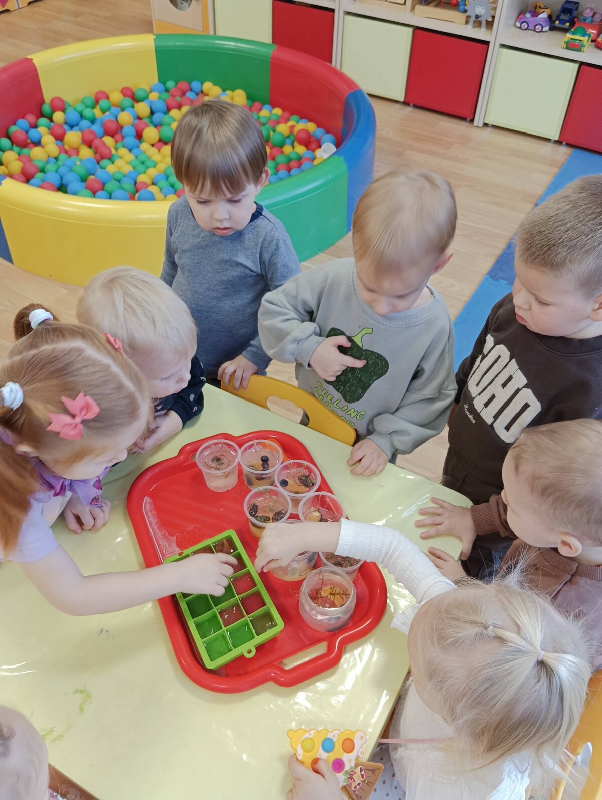 Ryte stebėjome kokiais vaikų ir šalčio sukurtais ledo ,,žaisliukais" virto sušalęs vanduo , tyrinėjome, lietėme,eksperimentavome.