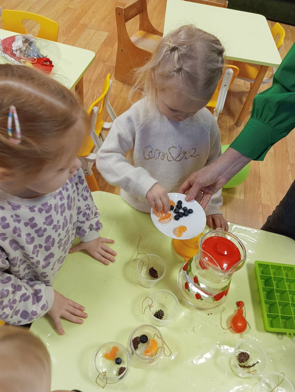 Vaikučiai stebėjo žiemos šalčio išdaigas - kaip vanduo tampa ledu.
