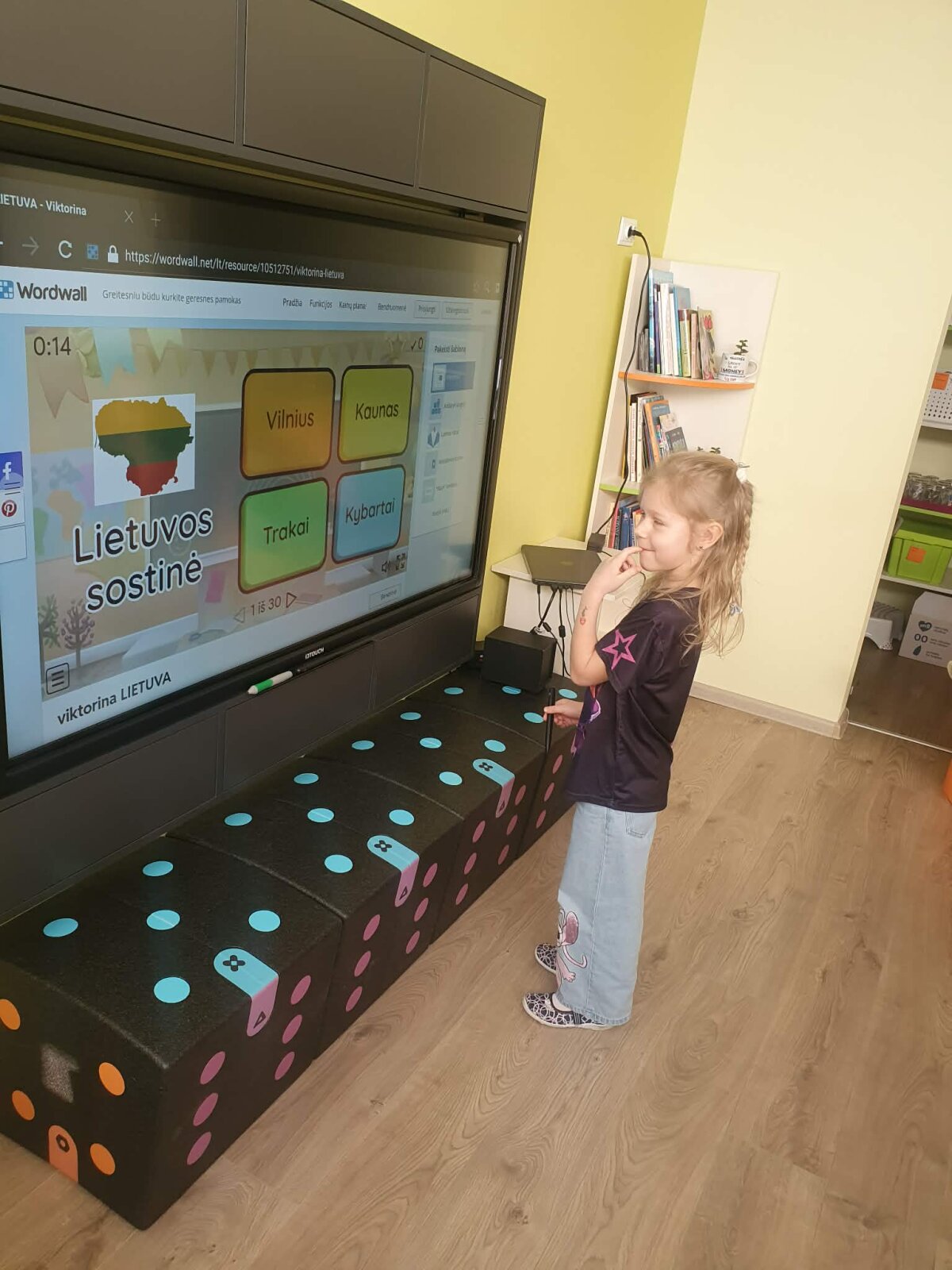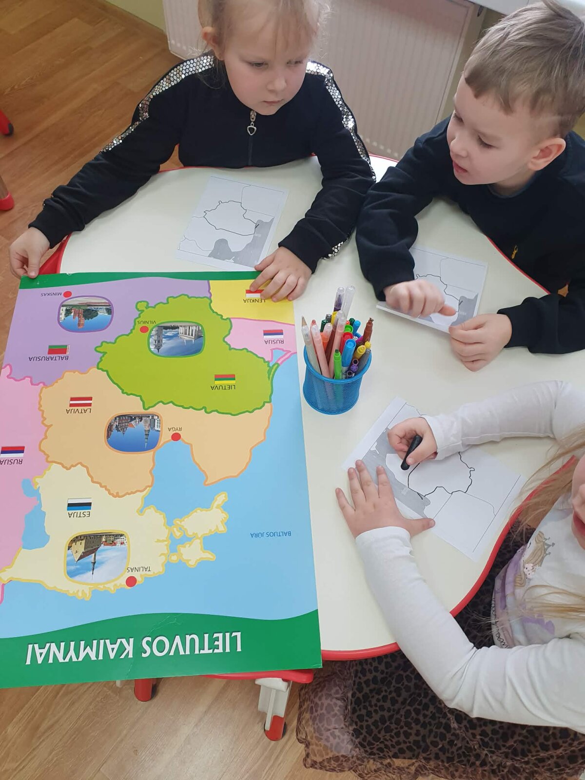 2D grupės komanda dalyvauja projekte „Ką gali knygą?“ ir pasirinko nagrinėti Kakės Makės enciklopediją apie Lietuvą. Vaikai su grupės mokytojomis pirmąją savaitę kalbėjo tema - „Aš gyvenu Lietuvoje“. Nagrinėjome Lietuvos vardo kilmę ir ką gi mums reiškia Lietuvos vardas, su kuo asocijuojasi, atlikome savo projektus ir žaidėme interaktyviuosius žaidimus; kaip Lietuva atrodo pasaulio žemėlapyje, gaublyje, atlikome tyrimą aiškindamiesi, kuri šalis didžiausia, kuri mažiausia ir kokia tarp jų yra mūsų Lietuva; kokie gi yra Lietuvos kaimynai, kokios yra mūsų valstybės sienos, kaip gi tai atrodo žemėlapyje, taip pat sugalvojome pamatuoti sieną ir su savo grupės kaimynais.