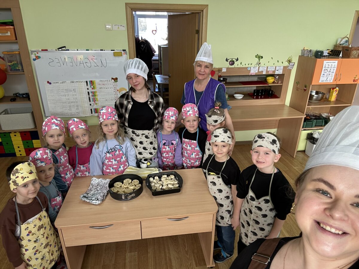 Užgavėnių rytą, 2D grupėje vyko edukacija, kaip gi pasigaminti pačias skaniausias cinamonines bandeles. Mažeikių Merkelio Račkausko gimnazijos mokinė, Beatričė Juodeikytė užgavėnių proga vaikams rodė patį nuostabiausia savo receptą. Kartu gaminome tešlą: svėrėme miltus, sviestą, pieną ir kitus ingredientus, gaminome įdarą - vaikų pramintą "saldų sviestą", maišėme, kočiojome, tepėme, pjaustėme, ir dar leidę bandelėms pamiegoti, pamatėme kaip jos užaugo! Galiausiai iškepėme ir vaišinome visą darželio bendruomenę "Blynų fiestoje". Na o jau skonis... Tai tikrai buvo pačios gardžiausios cinamoninės bandelės. Ačiū Beatriče!